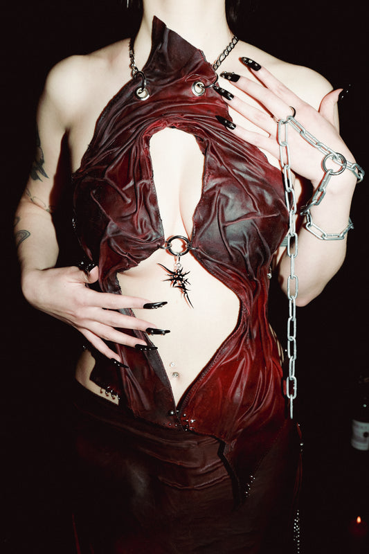 Thank you for considering our hand-made liquid latex tops. It is important to note that due to the nature of this craft, each item may exhibit slight variations in appearance and finish. Our liquid latex tops are meticulously handcrafted by myself, resulting in unique and individual pieces. This means that no two items will be exactly alike. Variations in color, texture, size, pattern, and finish are to be expected and should be considered part of the charm and character of the product. ⚔️⛓️🖤FULL DISCLAIMER BELOW